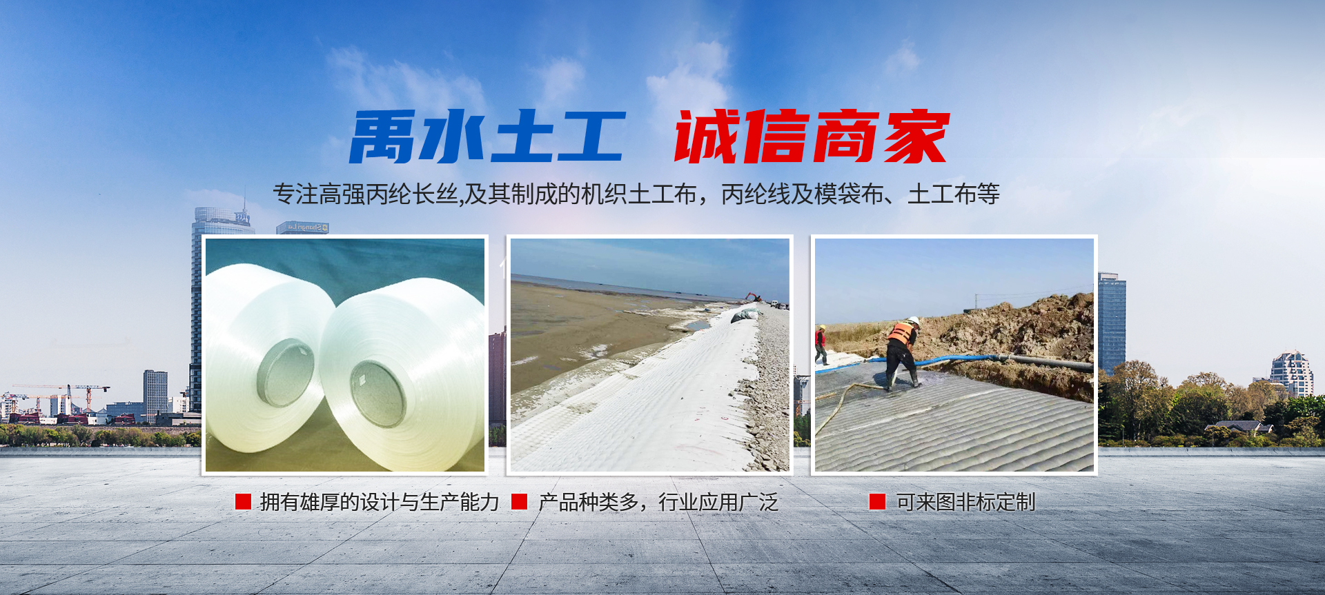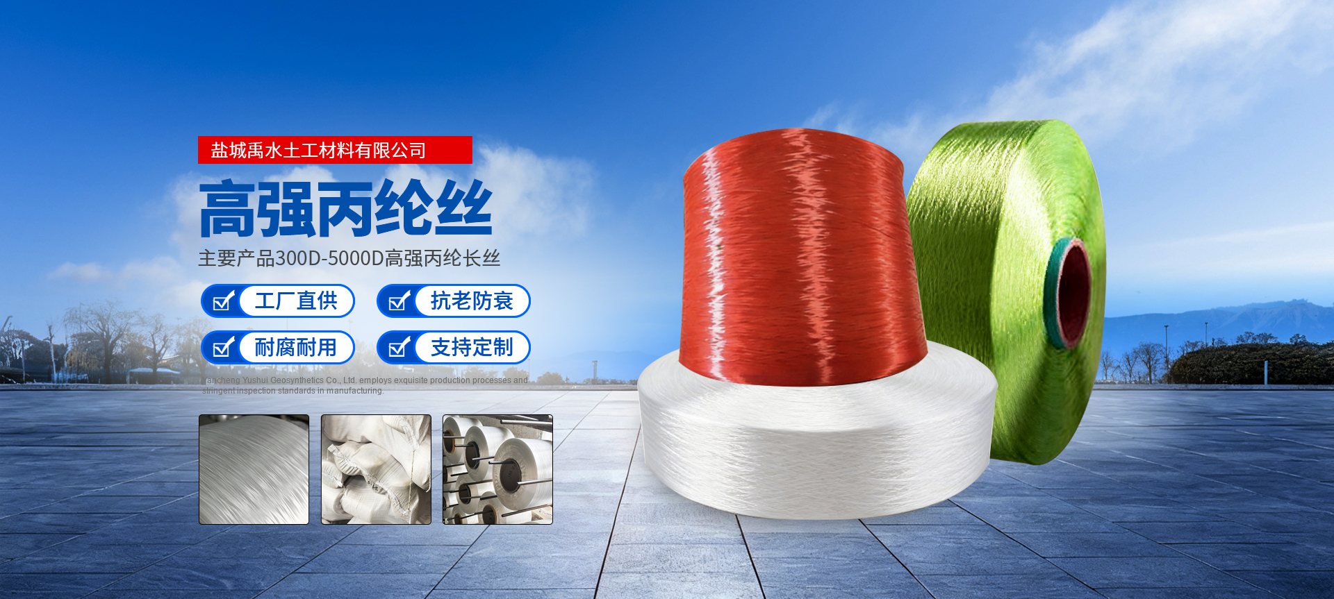 盐城禹水土工材料有限公司始建于二00二年底,公司东临黄海,西靠同三高速,与盐城市区陛邻而居,地理条件十分优越,交通便捷,是镶嵌在黄海之滨的一颗耀眼的明珠,公司初建就像幼芽出土显示出蓬勃生机。 公司从国内知名厂商处购买完善的生产设备和高质量的原材料,运用精湛的工艺流程和严格的检验标准进行生产,二00二年三月份投产以来,以完善的生产设备,准确的数据,精湛的工艺所生产的300D-3000D高强丙纶丝,产品质量指标均达到标准水平。